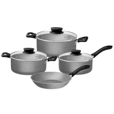 Juego de Ollas Tramontina en Aluminio con Revestimiento Antiadherente Starflon Max - 7 Piezas - Color Gris