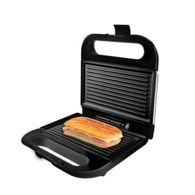 La MYSANDWICH GRILL II es la solución perfecta para disfrutar de sándwiches, paninis y bocadillos crujientes y sabrosos en cuestión de minutos. Con una potencia de 800W, esta sandwichera garantiza un calentamiento rápido y uniforme, permitiéndote preparar tus comidas favoritas con facilidad. Sus placas grill de 21.5 x 12.5 cm cuentan con un recubrimiento antiadherente libre de PTFE y PFOA, lo que no solo asegura que tus alimentos no se peguen, sino que también facilita enormemente la limpieza; simplemente necesitas un paño húmedo para dejarla como nueva.