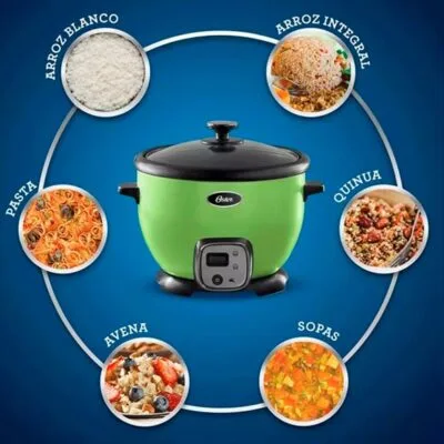 La Olla Arrocera Oster® 1.8L Sofrito CKSTRC8029K en un vibrante color Kiwi es ideal para preparar arroz y granos de forma rápida y deliciosa. Con una potencia de 700 watts y una capacidad de 1.8L (10 tazas), esta arrocera ofrece un rendimiento excepcional y te permite cocinar porciones generosas para toda la familia.