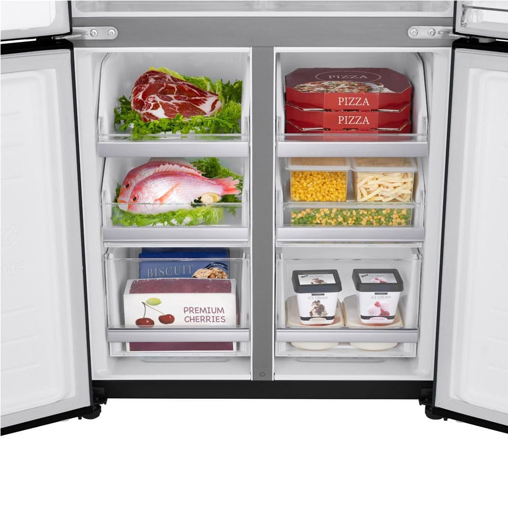 Una de las características más destacadas de la LM57SDT es su innovador sistema HygieneFresh+™, que incorpora un filtro higiénico que ayuda a eliminar hasta el 99,9% de las bacterias en el interior, garantizando que tus alimentos se mantengan frescos y seguros. La exclusiva tecnología Door-in-Door™, también conocida como «puerta mágica», permite un acceso rápido a tus productos más utilizados, reduciendo la pérdida de aire frío hasta en un 46,5%, lo que se traduce en un ahorro energético significativo.