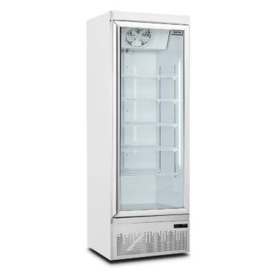 El VCFBM-500L cuenta con una estructura sólida de aluminio que ofrece una resistencia excepcional y estabilidad, adaptándose a las demandas de un entorno comercial activo. Su puerta abatible de triple vidrio de 4 mm de espesor está equipada con un sistema de calefacción (heating) para evitar la formación de condensación y asegurar una visibilidad clara de los productos en su interior.